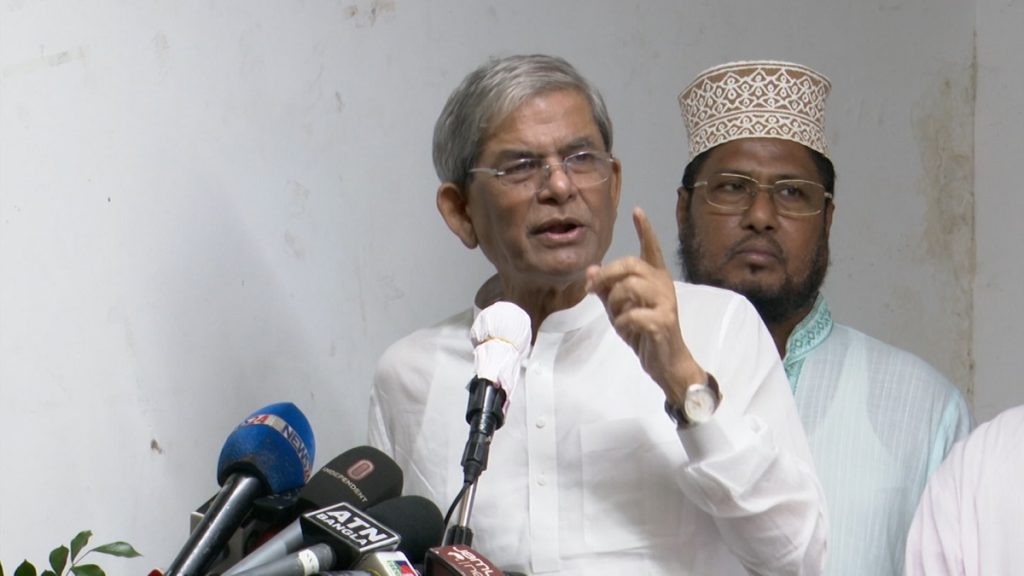 বিএনপি মহাসচিব মির্জা ফখরুল ইসলাম আলমগীর বলেন, যাদের হাতে বাংলাদেশের স্বাধীনতা-সার্বভৌমত্ব নিরাপদ নয়, যাদের হাতে মানুষের কোনো নিরাপত্তা নেই, যেখানে গণতন্ত্র নেই, জীবিকার নিরাপত্তা নেই, সেই সরকারকে সরিয়ে আমাদের জনগণের সরকার প্রতিষ্ঠা করতে হবে। যে নির্বাচনে মানুষের মতের প্রতিফলন ঘটবে না, এমন ভোটে অংশ নেবে না বিএনপি।