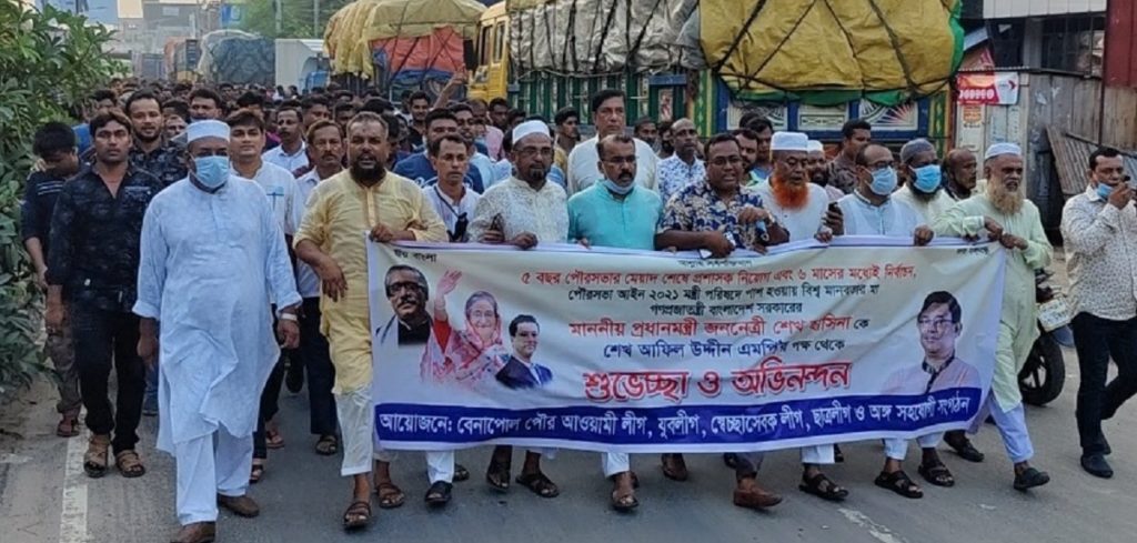 মিছিলটি বেনাপোল বাজারের বিভিন্ন এলাকা পরিদর্শন করেন। পরে সমাবেশটি বেনাপোল বাজারের নুর শপিং চত্বরে অনুষ্ঠিত হয়। সমাবেশে সভাপতিত্ব করেন বেনাপোল পৌর আওয়ামীলীগের সভাপতি আলহাজ এনামুল হক মুকুল।