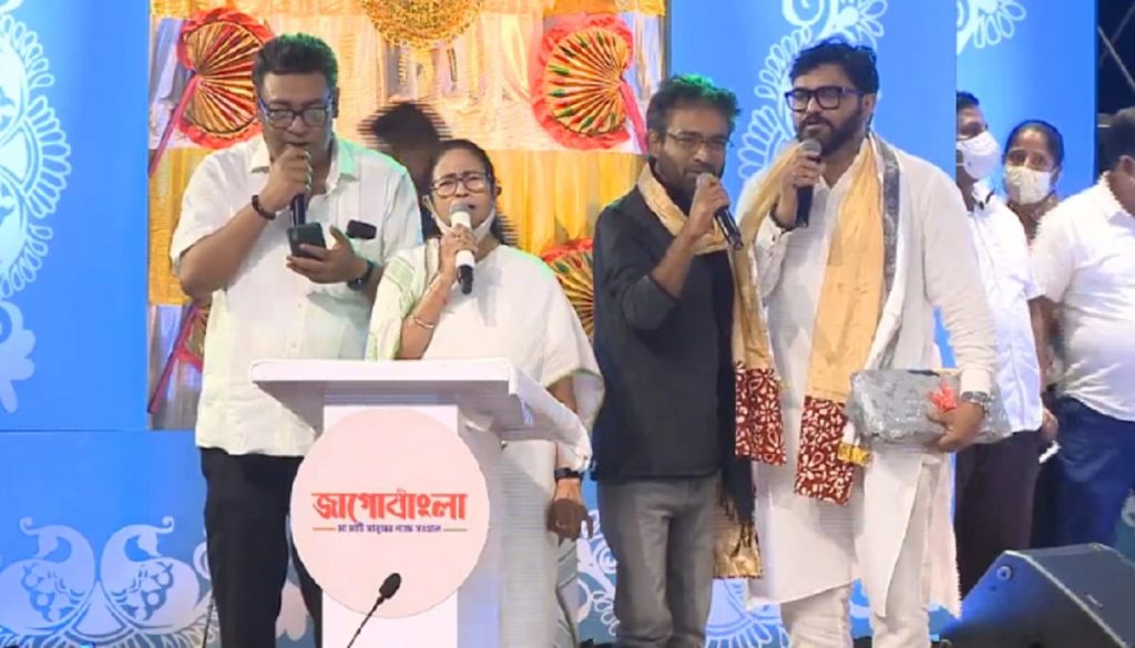 বাংলা গানের স্বর্ণযুগ ফিরিয়ে আনার উদ্যোগও নিচ্ছেন তৃণমূল নেত্রী। তিনি বলেন, আমরা হিন্দি গান ভালোবাসি। তবে স্বর্ণযুগের বাংলা গানগুলি এখনও মনে রেখেছি। বাবুল এই যে প্রতুলদার গান গেয়ে গেল। এমন অনেক ভালো গান হৃদয়কে দোলা দেয়। কিন্তু আমরা ধরে রাখতে পারি না। এখন মাঝে মাঝে রিয়েলিটি শোয়ে কয়েকটা ছেলে-মেয়েকে পুরনো গান গাওয়ানো হয়। দেখতে ভালো লাগে। দিওয়ালিটা হয়ে যাক। আমরা বসব। বাংলা গানটা কীভাবে আরও ফাটাফাটি করা যায়, সে ব্যাপারে ভাবনাচিন্তা করব। বাংলার গান, নাটক, সংস্কৃতি, বাংলার শিক্ষা, সভ্যতা সব কিছু ভালো।