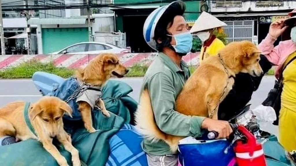 নিজ শহরে বেড়েছে করোনার প্রকোপ, তাই পরিবার পরিজন নিয়ে ২৮০ কিলোমিটার দূরের কা মাউ প্রদেশে পাড়ি জমাচ্ছেন থাই চি এম নামের এক ব্যক্তি। মোটরসাইকেলের এই যাত্রায় সফর সঙ্গী হয়েছে তার প্রিয় কুকুরগুলো।