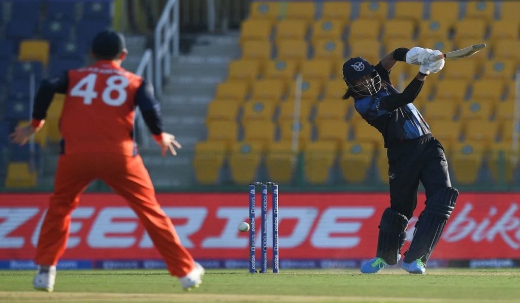 এর আগে টস হেরে ব্যাট করে নির্ধারিত ২০ ওভারে ৪ উইকেট হারিয়ে ১৬৪ রান করে পিটার সিলারের নেদারল্যান্ডস। দু’দলের জন্যই বাঁচা-মরার এই লড়াইয়ে নামিবিয়াকে চ্যালেঞ্জ জানানোর জন্য আবুধাবিতে অনুষ্ঠিত ম্যাচে ভালো সূচনাই পেয়েছিল নেদারল্যান্ডস। ৪২ রানের ওপেনিং জুটির পর রোলফ ভ্যান ডার মারউই দ্রুত আউট হলেও ওপেনার ম্যাক্স ও’ডোউড খেলেছেন ৫৬ বলে ৭১ রানের দুর্দান্ত ইনিংস। তৃতীয় উইকেট জুটিতে ও’ডোউডকে ভালোই সঙ্গ দিয়েছেন কলিন অ্যাকারম্যান। এই দুজন ব্যাটারের ৮২ রানের জুটি এসেছে মাত্র ৬২ বলে। এরপর স্কট এডওয়ার্ডসের ১১ বলে ২১ রানে ক্যামিওতে চ্যালেঞ্জিং সংগ্রহ নিশ্চিত করে ডাচরা। তবে ডেভিড ভিসের ব্যাটিংয়ে টানা দুই পরাজয়ে বিশ্বকাপ থেকে ছিটকে পড়ার দ্বারপ্রান্তে চলে গেল ডাচরা।