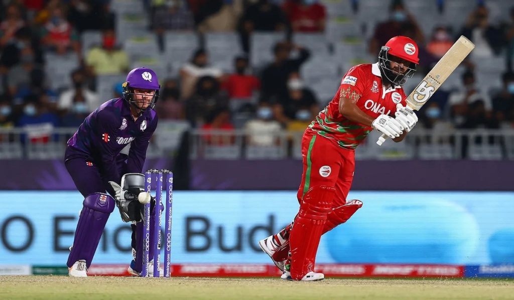 টি-টোয়েন্টি বিশ্বকাপে বি গ্রুপের কোয়ালিফায়ারের শেষ ম্যাচে টস জিতে ব্যাট করতে নামে ওমান। কিন্তু ইনিংসের দ্বিতীয় বল থেকেই ব্যাকফুটে চলে যায় তারা। জিতেন্দার সিংয়ের পর টপ অর্ডার ব্যাটার কাশ্যাপ প্রজাপতিও ফিরে যান দ্রুতই। ওপেনার আকিব ইলিয়াস তখন চার নম্বরে নামা মোহাম্মদ নাদিমকে সাথে নিয়ে চালিয়ে গেছেন ইনিংস মেরামতের চেষ্টা। ৪০ বলে ৩৮ রানের এই জুটিতে ঘুরে দাঁড়ানোর ক্ষেত্রও হয় তৈরি। তবে তা কাজে লাগাতে পারেনি ওমানের কোনো মিডল অর্ডার ব্যাটার। কেবল অধিনায়ক জিশান মাকসুদ চালিয়ে গেছেন নিঃসঙ্গ লড়াই। শেষ ওভারে আউট হবার আগে ৩ চার ও ১ ছয়ের সাহায্যে ৩০ বলে ৩৪ রান করেন এই ব্যাটার। ইনিংস সর্বোচ্চ ৩৭ রানের ইনিংস এসেছে আকিব ইলিয়াসের ব্যাট থেকে।