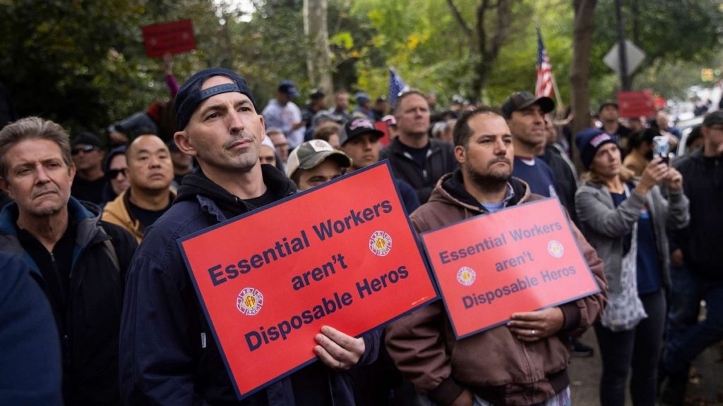কর্মক্ষেত্রে করোনার টিকা বাধ্যতামূলক করার প্রতিবাদে বিক্ষোভ করছেন যুক্তরাষ্ট্রের দমকল বাহিনীর সদস্যরা। বৃহস্পতিবার, নিউইয়র্কের সড়কে নামেন কয়েকশ ফায়ার সার্ভিস কর্মী।