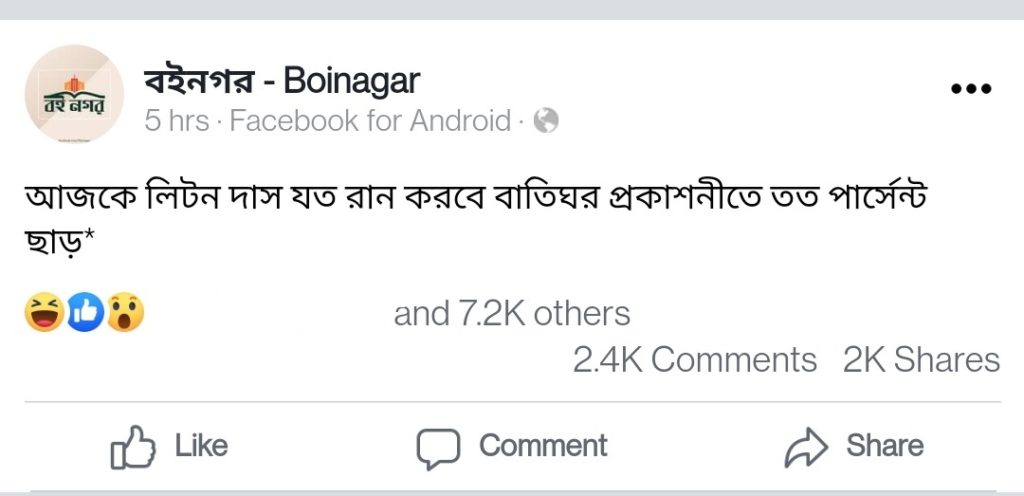 এমনিতেই লিটনকে নিয়ে আলোচনা-সমালোচনার শেষ নেই। তাই তার নাম ব্যবহার করে ব্যবসায়ীরা চেয়েছিলেন কিছুটা বিজ্ঞাপনী সুবিধা। কিন্তু সুবিধা আর হলো কোথায়! যতক্ষণে প্যাভিলিয়নে ফিরলেন, ততক্ষণে দল জয়ের বন্দরে না ভিড়লেও কাস্টমারদের পকেটের বন্দরে ৪৪% ছাড়ের টাকা ভেড়ার বন্দোবস্ত ঠিকই করে ফেলেছেন লিটন!