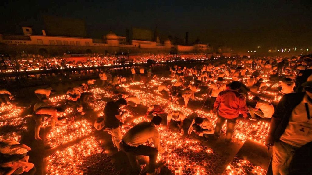 সরযুর তীরে অনুষ্ঠানে বুধবার উপস্থিত ছিলেন উত্তরপ্রদেশের মুখ্যমন্ত্রী যোগী আদিত্যনাথ। ১২ হাজার স্বেচ্ছাসেবক প্রদীপ জ্বালানোর কাজে হাত লাগিয়েছিলেন। সরযু নদীর তীর ছাড়াও শহরের বিভিন্ন অংশেই জ্বালানো হয় প্রদীপ।