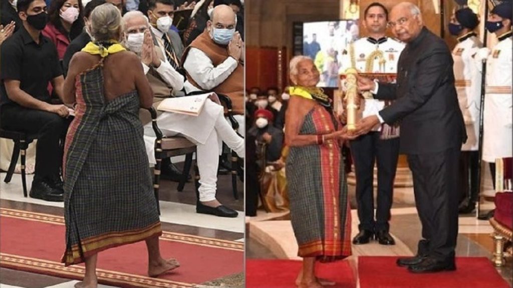 কর্নাটক রাজ্যের ৭৭ বয়সী এই নারী পরিচিত ‘বনের বিশ্বকোষ’ নামে। পুরস্কারের মঞ্চে এসেছিলেন নিজের হাল্কাকি জাতিসত্ত্বার ঐতিহ্যবাহী পোশাক পরে। এই আদিবাসী নারী তার জীবনকেও তথাকথিত সভ্যতার ‘অন্ধকারে’ নয়, বরং সাজিয়েছিলেন প্রকৃতির আদিম অকৃত্রিমতায়।