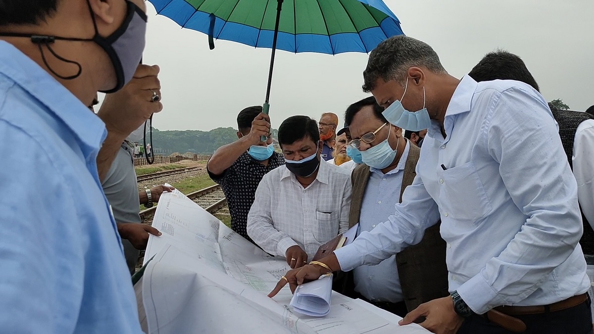 রেলপথ প্রকল্প পরিদর্শনের সময় ভারতের পররাষ্ট্র মন্ত্রণালয়ের অতিরিক্ত সচিব রাজ কুমার গোয়েল, প্রকল্পের এডভাইজার পঙ্কজ কুমার সিংসহ দু-দেশের প্রকল্প সংশ্লিষ্ট উর্দ্ধতন কর্মকর্তাগণ উপস্থিত ছিলেন।