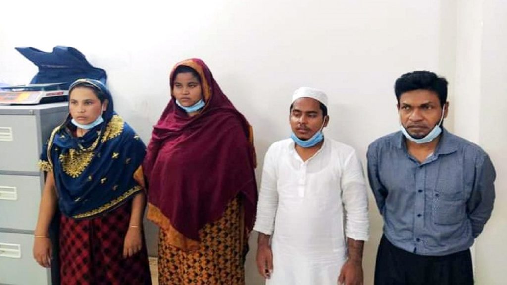 আটককৃতরা হলেন, গাজীপুর জেলার টঙ্গী পূর্ব থানা ঝিনু মার্কেট এলাকার হানিফ মিয়ার মেয়ে (১) মোসা. খাদিজা (৩৪), একই এলাকার মৃত ক্বারী বেলাল ছেলে (২) মো. আমির হোসেন (৪২), সেলিম উদ্দিন ছেলে (৩) হাফেজ মাওলানা আ. রহমান (২৫) এবং টাঙ্গাইল জেলার নাগরপুর থানা বিশশলীন গ্রামের মৃত আ. বারেকের মেয়ে (৪) মোসা. রেবেকা (৩০)।