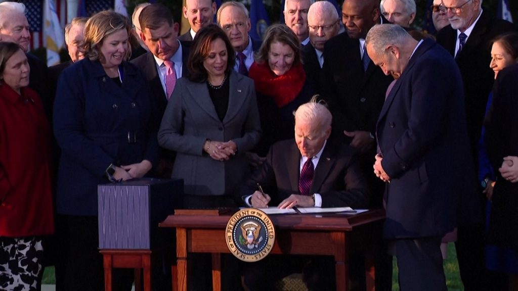 ১ দশমিক ২ ট্রিলিয়ন ডলারের ‘অবকাঠামো বিনিয়োগ বিল’ সইয়ের মাধ্যমে আইনে পরিণত করলেন মার্কিন প্রেসিডেন্ট জো বাইডেন। অর্থনৈতিক এবং আইনি সংস্কার পরিকল্পনার ক্ষেত্রে এটি গুরুত্বপূর্ণ ভূমিকা পালন করবে- এমনটাই প্রত্যাশা।