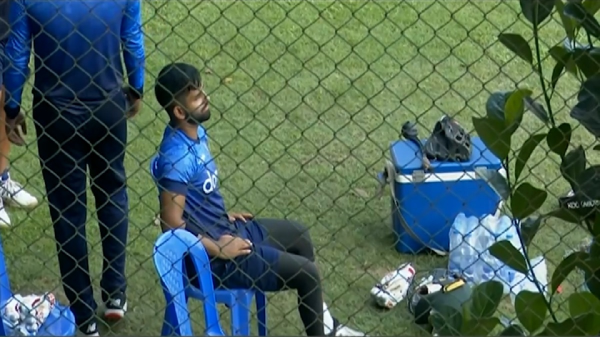 বাংলাদেশের অনুশীলনে শামীম হোসেনের পায়ে চোট পাওয়াটা যেন হঠাৎই ছন্দপতন। মাটিতে লুটিয়ে পড়েছেন এই অ্যাটাকিং ব্যাটার। একটু পর উঠলেও হাঁটতে পারছিলেন না ঠিক মতো। খুঁড়িয়ে খুঁড়িয়ে রানিংয়ের চেষ্টা করেও খুব একটা সুবিধা করতে পারেননি তিনি। আশ্রয় নিতে হয়েছে পাশে থাকা চেয়ারে।