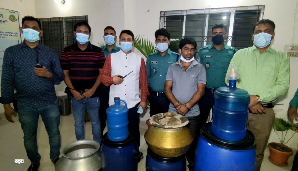 গোপন সংবাদের ভিত্তিতে টঙ্গী পশ্চিম থানা পুলিশ অভিযান চালিয়ে চোলাই মদ তৈরির সরঞ্জামসহ তাকে আটক করা হয়। পরে তার তৈরি করা প্রায় ২০০ কেজি চোলাই মদ উদ্ধার করা হয়। এ নিয়ে থানায় একটি মাদক মামলা দায়ের করা হয়েছে।