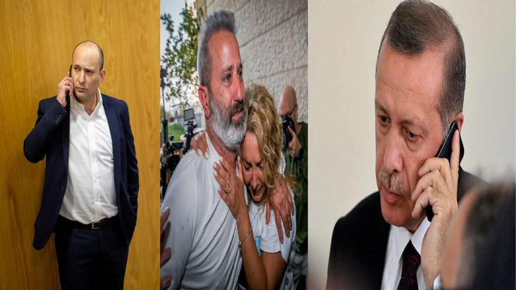 গুপ্তচরবৃত্তির অভিযোগে আটক ইসরায়েলি দম্পতিকে ছেড়ে দেয়ায় তুরস্কের প্রেসিডেন্ট এরদোগানকে ধন্যবাদ ও কৃতজ্ঞতা জানিয়েছেন ইসরায়েলি প্রধানমন্ত্রী নাফতালি বেনেট। এজন্য ক্ষমতায় আসার পর প্রথমবারের মত ফোনালাপ হয় দুইদেশের প্রধানের। আটক ইসরায়েলি দম্পতিকে ছেড়ে দেয়ায় ইসরায়েলি প্রধানমন্ত্রী ও পররাষ্ট্রমন্ত্রী যৌথ বিবৃতিতে ধন্যবাদ ও কৃতজ্ঞতা জানান তুর্কি প্রেসিডেন্টকে। খবর আই২৪ নিউজের।