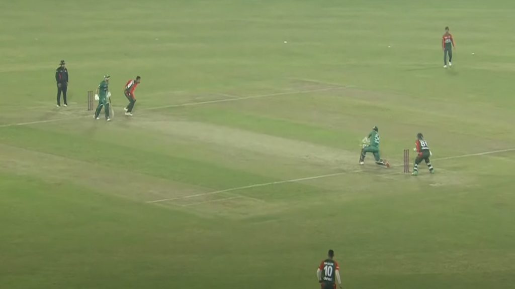 এর আগে, বাংলাদেশের দেয়া ১২৫ রানের টার্গেটে ব্যাট করতে নেমে আবারও শুরুতেই অধিনায়ক বাবর আজমের উইকেট হারায় পাকিস্তান। হোয়াইটওয়াশ এড়ানোর জন্য বোলারদের খুব বড় কোনো পুঁজি শেষ ম্যাচেও দিতে পারেনি ব্যাটাররা। তবে বোলাররা চেষ্টা চালিয়ে গেছেন শেষ পর্যন্ত। বাবর আজমকে ফিরিয়ে দেয়া যেতে পারতো তৃতীয় ওভারেই। কিন্তু নাসুম আহমেদের বলে এলবিডব্লিউয়ের জোরালো আবেদন কানে তোলেননি আম্পায়ার। আর বাংলাদেশও অজানার কোনো সুযোগের আশায় নেয়নি রিভিউ। তবে রিপ্লেতে দেখা গেছে, নাসুমের বলটি আঘাত করতে পারত মিডল ও লেগ স্ট্যাম্প।