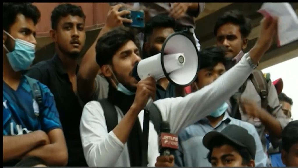 এ সময় দুই পাশে আটকে থাকা গাড়ির চালকদের সনদ যাচাই করে কিছু ছাত্র। পরে হাউস বিল্ডিং পর্যন্ত একটি বিক্ষোভ মিছিল নিয়ে আরও বড় জমায়েত হয় তাদের। সেখানে সাত দফা দাবি তুলে ধরা হয়। তেলের দাম কমানো, ফিটনেস না থাকলে সড়কে চলতে না দেয়া এবং বিআরটিএ-কে দালালমুক্ত করারও দাবি জানায় শিক্ষার্থীরা।