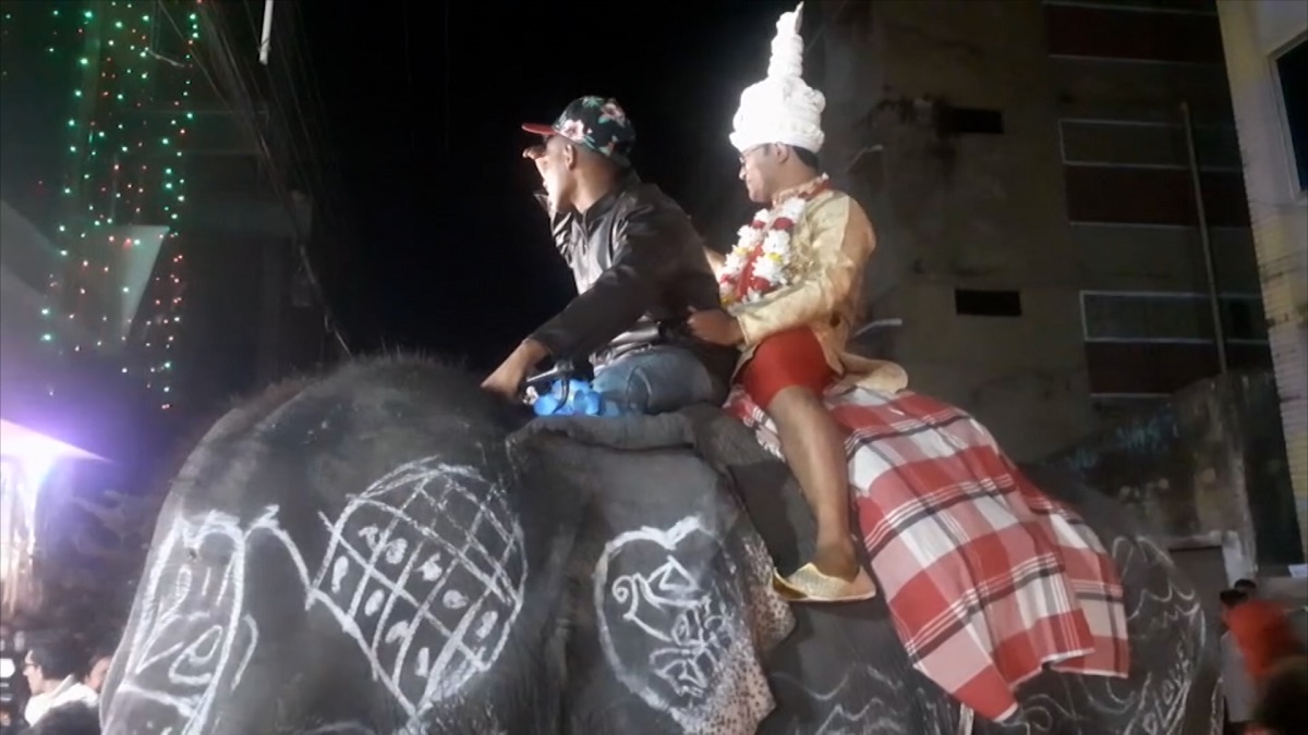 জীবনসঙ্গীকে ঘরে তুলতে হাতি ভাড়া করে তার পরিবার। বাদ্যের তালে হাতির কসরত আর স্বজনদের উচ্ছ্বাসে সাতপাঁকে বাঁধা পড়েছে বর-বধূ।