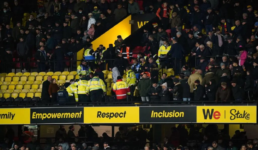 লিগ টপার চেলসির বিরুদ্ধে নিজের মাঠে খেলতে নেমেছিল টেবিলের ১৭ তম অবস্থানে থাকা ওয়াটফোর্ড। ম্যাচ চলছে তখন গোলশূন্য অবস্থায়। হঠাৎই মাঠে নেমে এলো নিস্তব্ধতা। সবার দৃষ্টি চলে গেল গ্যালারিতে। হার্ট এ্যাটাকের শিকার হয়েছেন গ্যালারিতে থাকা এক সমর্থক। খেলা থামইয়ে দিলেন রেফারি ডেভিড কুট। গ্রাহাম টেইলর স্ট্যান্ডে তৎক্ষণাৎ চিকিৎসা দিতে ছুটলেন দুই ক্লাবেরই টিম ডক্টররা। মিনিট বিশেক পর সেই সমর্থকককে স্ট্যাবিলাইজড করা হয়। এর মাঝে বন্ধ থাকে ম্যাচ। দুই দলের খেলোয়াড়দের মাঠ ত্যাগ করতে বলা হয়। তারপর হাসপাতালে নেয়া হয় সেই সমর্থককে।