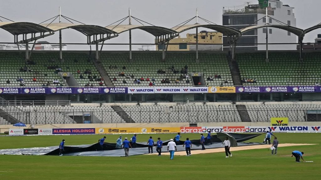 অবশেষে বৃষ্টি থেমেছে মিরপুর শের-ই বাংলা স্টেডিয়ামে। উইকেটের কাভার সরিয়ে প্রস্তুত করা হচ্ছে পিচ। ১১ লাঞ্চের বিরতির পর খেলা শুরুর কথা থাকলেও আবারও বৃষ্টি হানা দেয়ায় দ্বিতীয় দিনের খেলা শুরু হবে ১২টা ৫০ মিনিট।