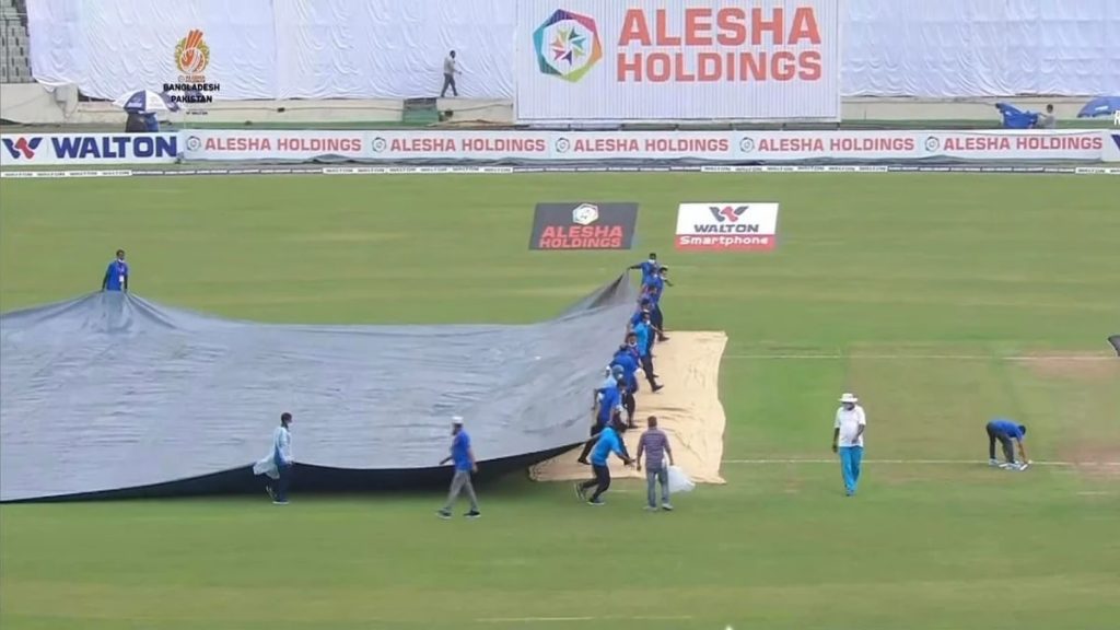 এরপর সারা রাত বৃষ্টির পর সকাল থেকে গুঁড়িগুঁড়ি বৃষ্টি থাকায় সম্ভব হয়নি আজকের দিনের খেলাও।