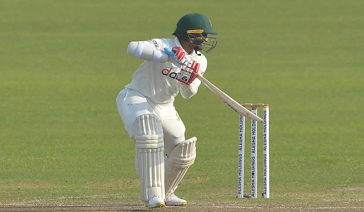 এর আগে, ২৫ রানে ৪ উইকেট হারিয়ে ধুঁকতে থাকা ইনিংস মেরামত করতে লড়াই চালিয়েছেন লিটন দাস ও মুশফিকুর রহিম। ব্যক্তিগত ৪৫ রানে লিটন আউট হয়ে গেলে ভাঙে এই দুই ইনফর্ম ব্যাটারের ৭৩ রানের জুটি। এরপর ব্যাট করতে নামেন সাকিব আল হাসান। পাল্টা আক্রমণে রানের গতি বাড়াতে থাকেন এই চ্যাম্পিয়ন অলরাউন্ডার। মুশফিকের সাথে জুটি গড়ে ইনিংস ব্যবধানে পরাজয় এড়ানোর চেষ্টাও করেন তিনি। কিন্তু দুর্ভাগ্যজনকভাবে আউট হয়ে সাজঘরে ফিরতে হয় মুশফিককে। এরপর লম্বা সময় সঙ্গ দিয়ে আউট হয়ে গেছেন মেহেদী হাসান মিরাজ। তারপর সাকিবও বিদায় নিলে ইনিংস পরাজয়ের দ্বারপ্রান্তে চলে যায় মমিনুল হকের দল।