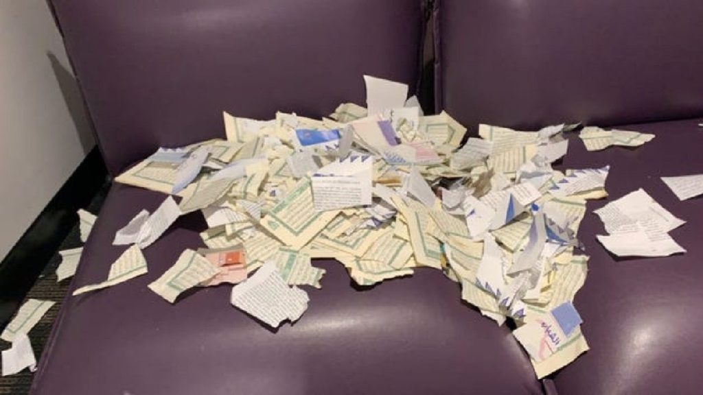 সোশ্যাল মিডিয়ায় ছড়িয়ে পড়া ছবিতে দেখা যায়, পবিত্র কোরআনের পাতা ছিঁড়ে ফেলে রাখা হয়েছে। মুসলিম ছাত্র সংগঠনের প্রধান সাশা উদ্দীন বলেন, বিষয়টিকে গুরুত্ব দিয়ে পুলিশ দ্রুত গতিতে তদন্ত চালিয়ে যাওয়ায় আমরা আনন্দিত। আমরা শান্তির সাথে এগিয়ে যেতে চাই।