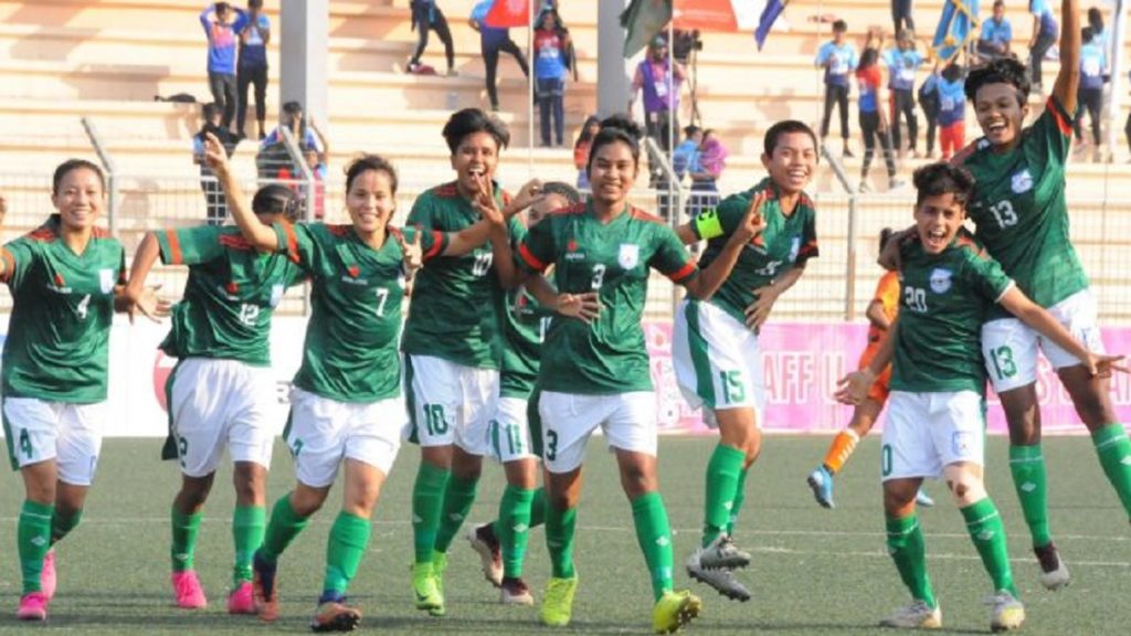 দ্বিতীয় ম্যাচের স্কোয়াড থেকে ৫ পরিবর্তন নিয়ে মাঠে নামা বাংলাদেশ শুরু থেকেই ছিল আক্রমণাত্মক। আর সেই ধারেই খেয় হারায় ভারত। ষষ্ঠ মিনিটে বল নিয়ে ঢুকে পড়া তহুরা খাতুনকে ক্রিতিনা দেবি ফাউল করলে পেনাল্টি পায় বাংলাদেশ। সেখান থেকে বাংলাদেশকে প্রথম গোল এনে দেন শামসুন্নাহার।