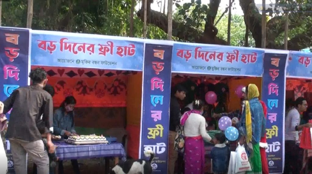 ফ্রি-হাটে সুবিধাবঞ্চিত দুই শতাধিক শিশু ও শিক্ষার্থীদের মাঝে বড়দিনের উপহার সামগ্রী, প্রকৃতিবান্ধব বর্ণমালা শিক্ষার বই- ‘প্রকৃতি পাঠ’, জাতীয় পতাকা, শীতের পোশাক, খেলনাসহ প্রয়োজনীয় উপকরণ বিতরণ করা হয়।