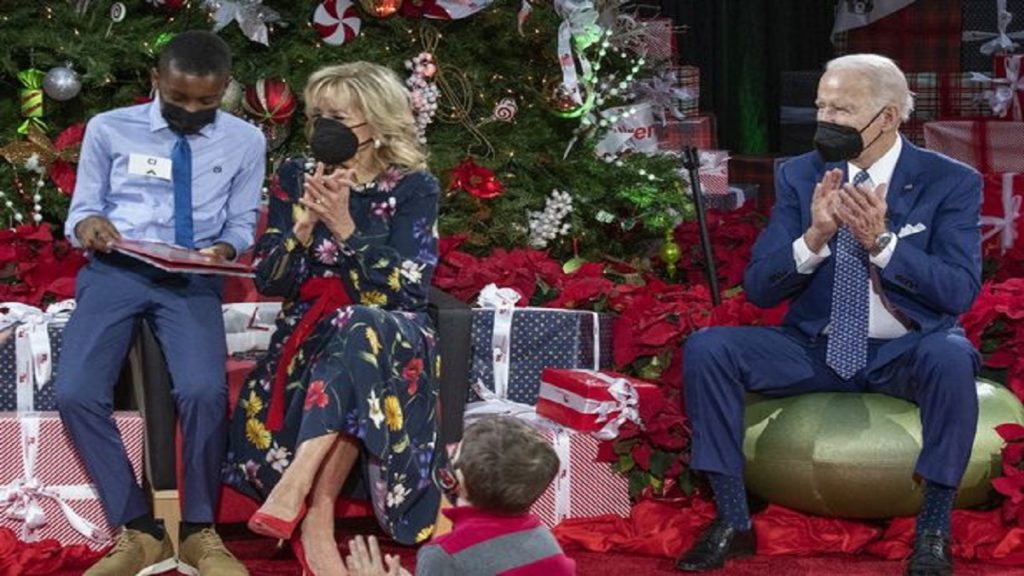 বড়দিনে মার্কিন ফার্স্ট লেডি’র চিলড্রেন’স ন্যাশনাল হসপিটালে যাওয়ার রীতি বহু পুরোনো। তবে জো বাইডেনের সফর ছিল একেবারেই অপ্রত্যাশিত। শিশুরাসহ চমকে যায় হাসপাতাল কর্মীরাও। শিশুদের জন্য বই উপহার নিয়ে যান বাইডেন দম্পতি। গল্প পড়ে শোনান জিল বাইডেন।