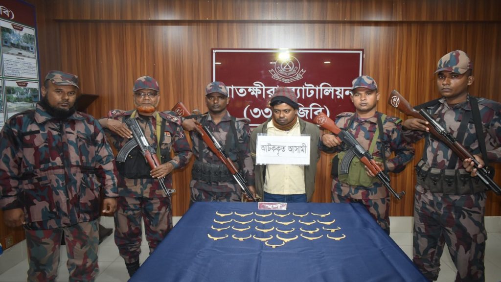 এসময় যানবাহন তল্লাশি করে ভারত হতে বাংলাদেশে পাচারের প্রাক্কালে ২৫ টি স্বর্ণের নেকলেসসহ ও একটি মোটর সাইকেলসহ মো. হুমায়ূন কবীরকে আটক করতে সক্ষম হয়। আটককৃত মালামালের মূল্য প্রায় ২৪ লাখ ৮২ হাজার ১২৫ টাকা।