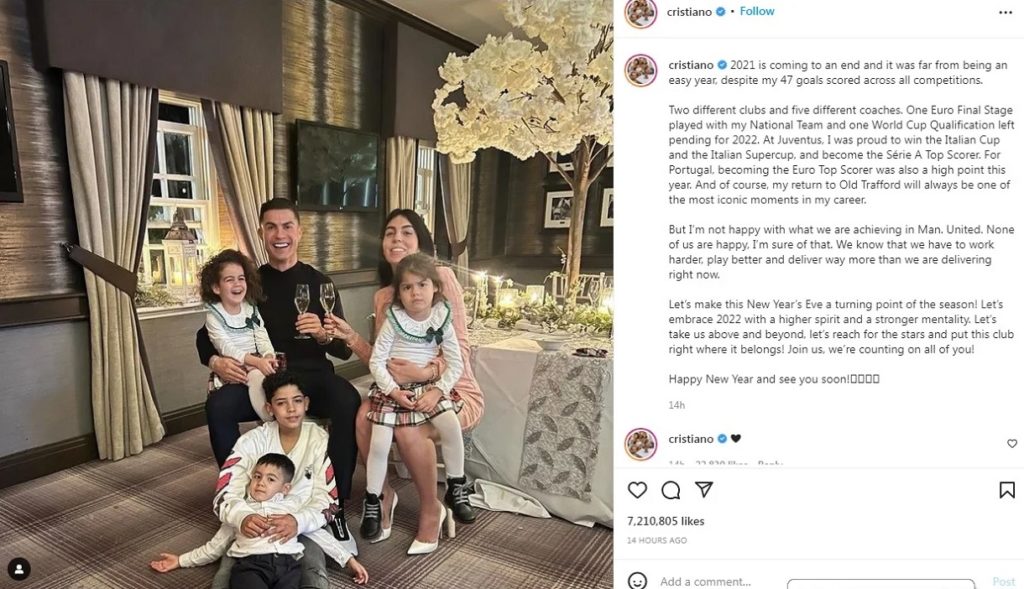 ২০২১ সালে য়্যুভেন্টাস ছেড়ে পাড়ি জমিয়েছেন পুরনো ক্লাব ম্যানচেস্টার ইউনাইটেডে। সেই বছর ইতালিয়ান ক্লাবটির হয়ে জিতেছিলেন দুই শিরোপা এবং হয়েছিলেন লিগের সর্বোচ্চ গোলদাতা। তবুও এক যুগ পর পুরনো ক্লাবে ফেরাকেই সবচেয়ে আনন্দের মুহূর্ত বলেছেন রোনালদো। এদিকে ক্লাব পরিবর্তন কিংবা পর্তুগালের সরাসরি বিশ্বকাপের টিকিট না পাওয়ায় বছরটা সহজ ছিল না সিআরসেভেনের জন্য। অবশ্য নেটিজেনরা সেসব দিকে খুব বেশি পাত্তা দিচ্ছে না। তারা পাখির চোখ করেছে রোনালদোর ৪৭ গোলকেই!