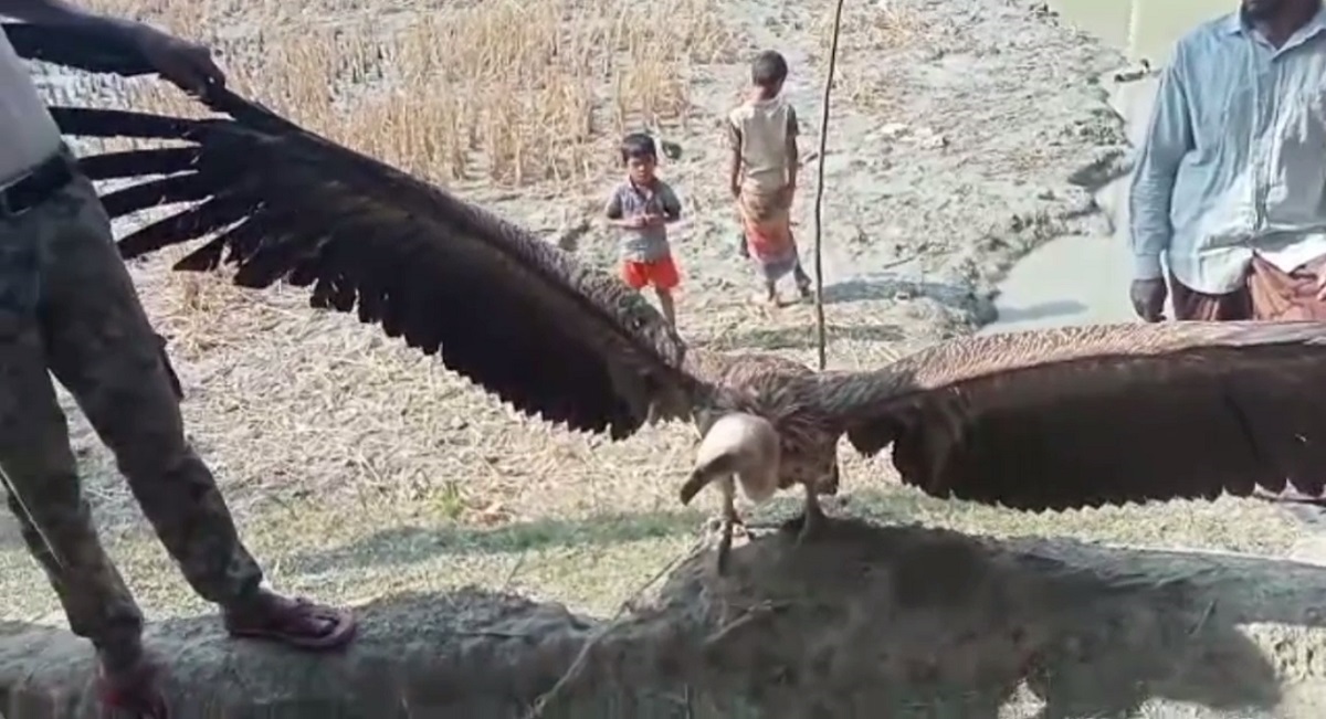 পটুয়াখালীর কলাপাড়া উপজেলায় ধান ক্ষেত থেকে একটি শকুন উদ্ধার করা হয়েছে।