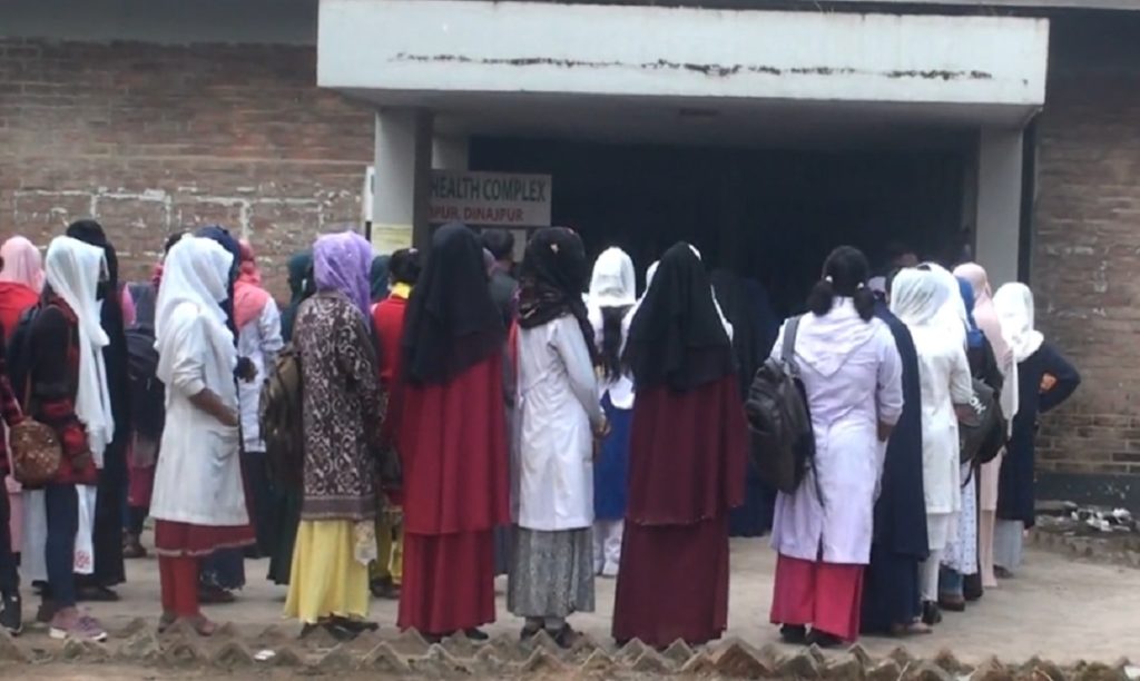 করোনা প্রতিরোধে দিনাজপুরের হিলিতে ১২ থেকে ১৭ বছর বয়সী ছাত্র-ছাত্রীদের করোনার টিকা দেয়া কার্যক্রম শুরু হয়েছে। বুধবার (১২ জানুয়ারি) সকাল ১০টা থেকে উপজেলা স্বাস্থ্য কমপ্লেক্সে, পৌরসভা কার্যালয় ও আমদানি-রফতানিকারক গ্রুপের কার্যালয়ে এসব টিকা দেয়া কার্যক্রম শুরু হয়। প্রথম ধাপের দুই দিনে মোট চার হাজর ৮০০ জন ছাত্র-ছাত্রীকে করোনার টিকা দেয়া হবে। বৃহস্পতিবার (১৩ জানুয়ারি) এই টিকা দান কর্মসূচি চলবে।
