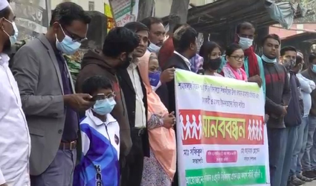 শাহাজালাল বিজ্ঞান ও প্রযুক্তি বিশ্ববিদ্যালয়ের (শাবিপ্রবি) ভিসি অধ্যাপক ফরিদ উদ্দিন আহমেদের পদত্যাগ চেয়ে নরসিংদীতে মানবন্ধন করেছে শাবিপ্রবির সাবেক ও বর্তমান শিক্ষার্থীরা। শুক্রবার (২১ জানুয়ারি) সকাল ১১টার দিকে শাহাজালাল বিজ্ঞান ও প্রযুক্তি বিশ্ববিদ্যালয় নরসিংদী জেলা প্রাক্তন ছাত্র কল্যাণ সমিতির উদ্যোগে নরসিংদী প্রেস ক্লাবের সামনে এই মানবন্ধন করা হয়।