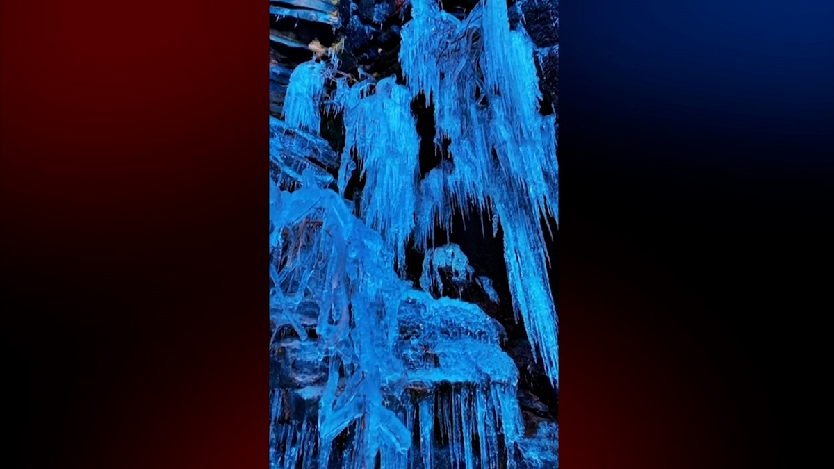 তীব্র ঠান্ডায় জমাট বেঁধেছে সৌদি আরবের একটি আস্ত ঝরনা।