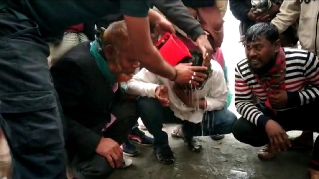 মানিকগঞ্জের শিবালয়ে ইউপি নির্বাচনে জয়লাভ করায় এক চেয়ারম্যান ও দুই মেম্বারকে দুধ দিয়ে মাথা ধোয়ালেন গ্রামবাসী। এরা হলেন, উপজেলার তেওতা ইউনিয়নের নবনির্বাচিত চেয়ারম্যান মো. মোশারফ হোসেন, ৪ নং ওয়ার্ড সদস্য মোহাম্মদ আলী ও ৫ নং ওয়ার্ড সদস্য দেলোয়ার হোসেন।