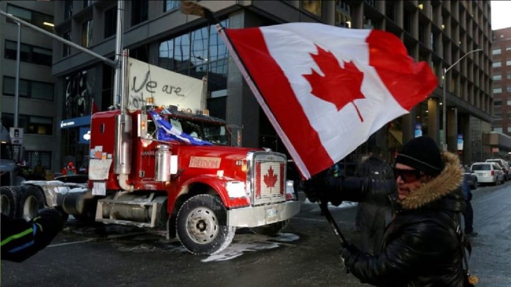 কানাডায় দ্বিতীয় সপ্তাহে গড়ালো ভ্যাকসিন এবং করোনা বিধিমালাবিরোধী আন্দোলন। পরিস্থিতি মোকাবেলায় অটোয়ায় জারি করা হয়েছে জরুরি অবস্থা। আন্দোলন ছড়িয়ে পড়েছে কুইবেক-টরেন্টোর মতো বড় শহরগুলোতেও।