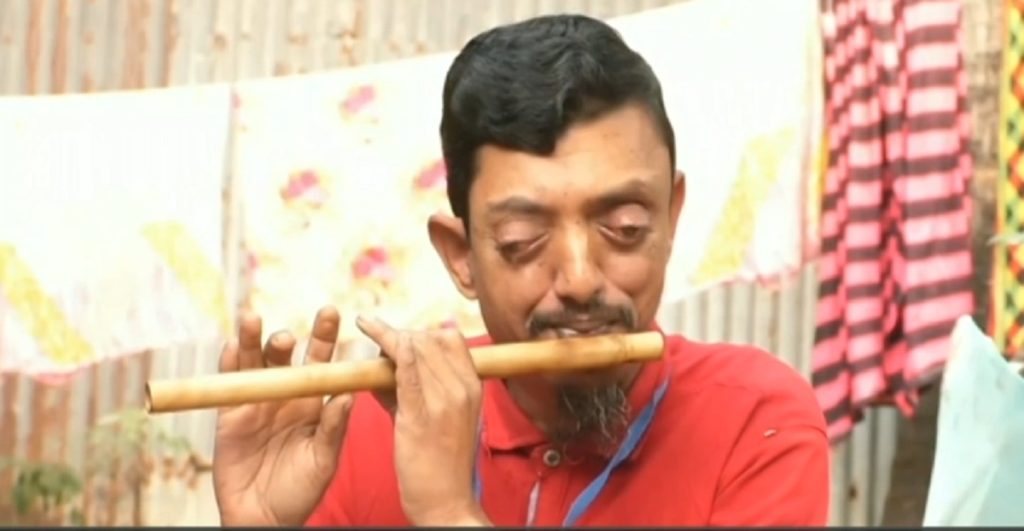 জন্মান্ধ আব্দুল মতিন অল্প বয়সেই হারিয়েছেন বাবা-মাকে। এরপর থেকেই শুরু জীবনযুদ্ধ। হাতে তুলে নেন বাঁশি। মাতাচ্ছেন চারপাশের মানুষকে। ৩৫ বছর বয়সী মতিনের স্ত্রীও শারীরিক প্রতিবন্ধী। কষ্টে ভরা দু’জনের জীবন। ভাতার সামান্য টাকায় চলে না সংসার।