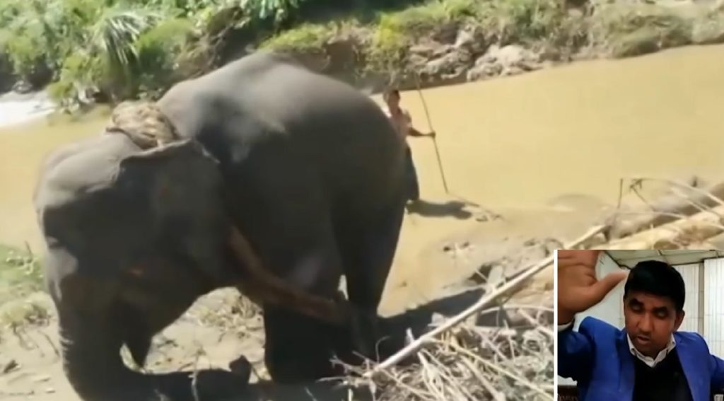 চিম্বুক পাহাড়ের পাদদেশের বনাঞ্চল থেকে গাছ কেটে ঝুলিয়ে দেয়া হচ্ছে হাতির কাঁধে। আর সেই হাতি পাহাড়ি উঁচু-নিচু ঢাল পেরিয়ে স্থানীয় দেবতা ঝিরি হয়ে বয়ে নিয়ে যাচ্ছে পাচার করা এসব কাঠ।