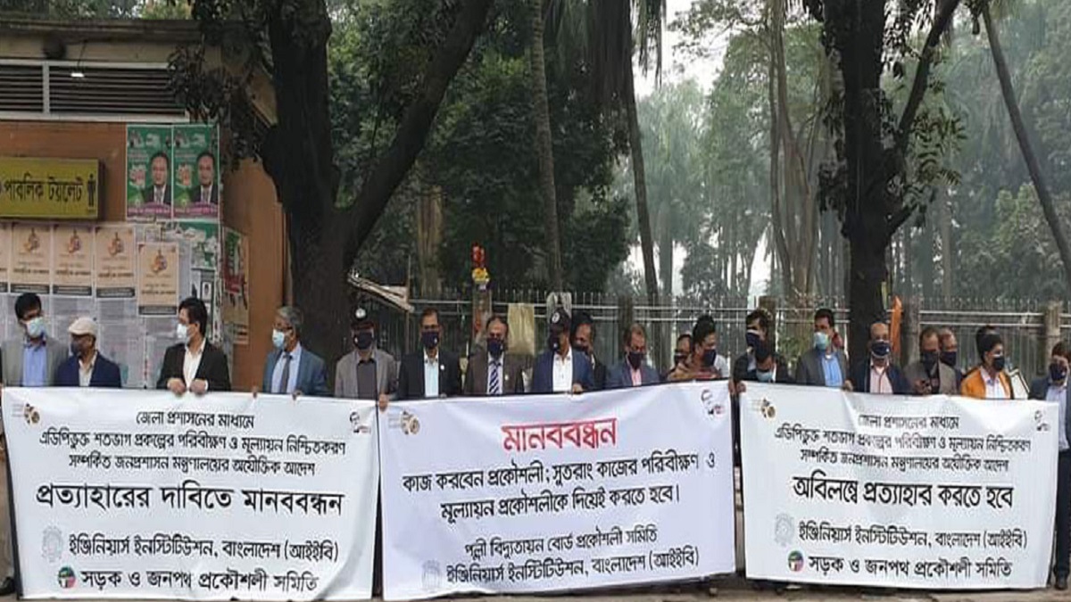 রাজধানীতে প্রকৌশলীদের বিভিন্ন সংগঠনের মানববন্ধন