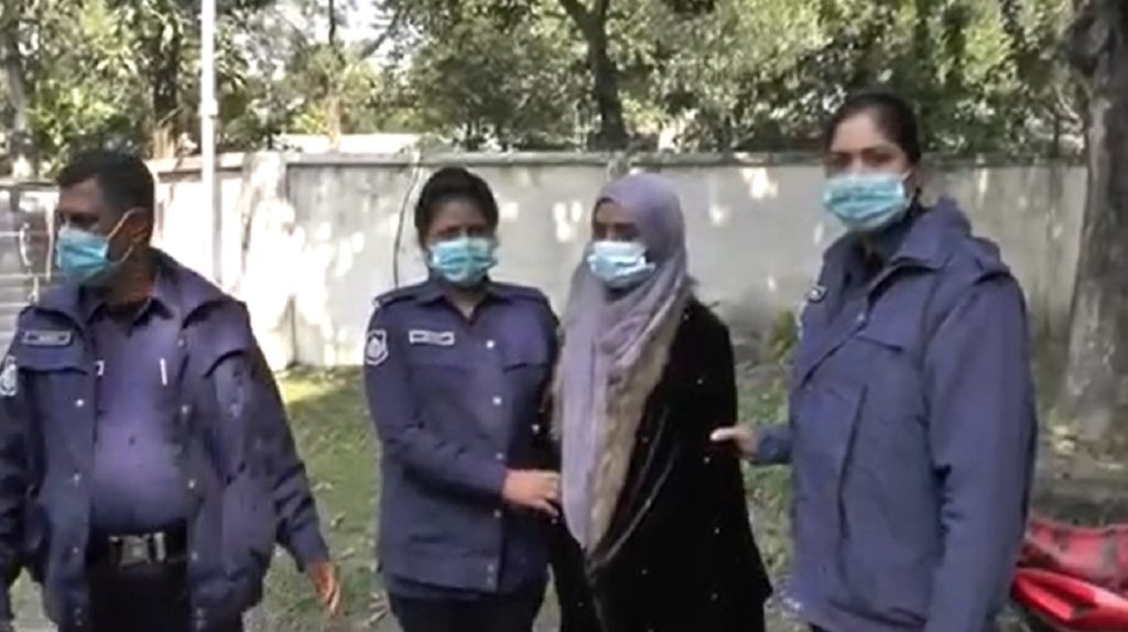নরসিংদীর পলাশে গোপনে অন্য মেয়েকে বিয়ে করায় চেতনা নাশক ইনজেকশন দিয়ে অচেতন করে মীর মাইনুল হক (২৫) নামে এক যুবককে গলা কেটে হত্যার অভিযোগ উঠেছে ইসরাত জাহান মিম নামে এক এইচএসসি পরিক্ষার্থীর বিরুদ্ধে। নিহত মীর মাইনুল হক ঘোড়াশাল দক্ষিণ চরপাড়া গ্রামের মৃত আব্দুল ফেলু মীরের ছেলে। সে ঘোড়াশাল মুসাবিন হাকিম ডিগ্রি কলেজের এইচএসসি পরীক্ষার্থী। এরই মধ্যে অভিযুক্ত ইসরাত জাহান মিমকে গ্রেফতার করেছে পুলিশ।
