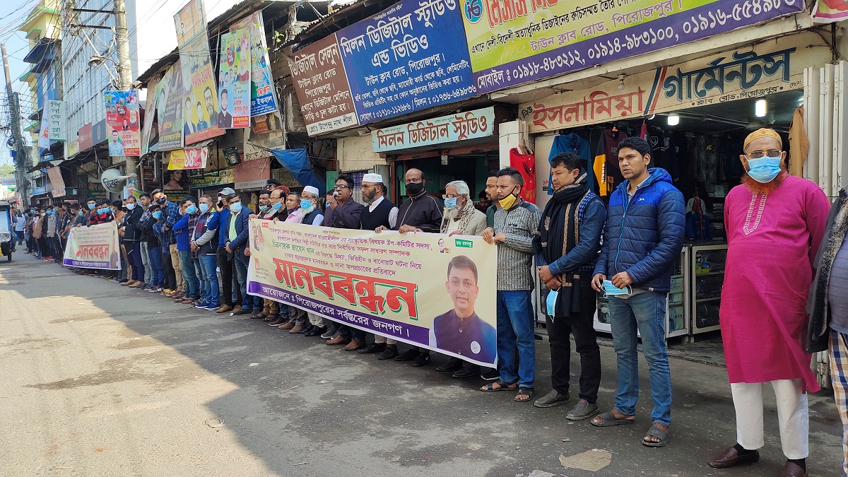 চলচ্চিত্র সমিতির সাবেক সাধারণ সম্পাদক জায়েদ খানের বিরুদ্ধে সংখ্যালঘু সম্প্রদায়ের সম্পত্তি দখলের অভিযোগের প্রতিবাদে পিরোজপুরে মানববন্ধন করেছে স্থানীয়রা। মানববন্ধনে অংশগ্রহণকারীদের দাবি, সংখ্যালঘু সম্প্রদায়ের সম্পত্তি দখলের ঘটনায় জায়েদ খান কোনোভাবেই জড়িত নন।