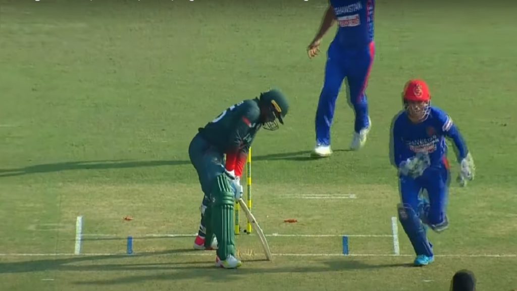 ব্যাটিং বিপর্যয়ের ষোলকলা পূরণ করে মুজিব উর রেহমানের বলে বোল্ড হয়েছেন সাকিব আল হাসান। এরপর রশিদ খান বোলিংয়ে এসেই ফিরিয়ে দিয়েছেন মাহমুদউল্লাহকে। ফজল হক ফারুকির পেসে ব্যাটিংয়ের টপ ও মিডল অর্ডার গুঁড়িয়ে যাওয়ার পর মাহমুদউল্লাহ ও সাকিবের ব্যাটে যখন ঘুরে দাঁড়ানোর আশা দেখছিল বাংলাদেশ, তখনই আঘাত হানলেন মুজিব-রশিদ আর ফিরে গেলেন দলের ভরসা সাকিব-মাহমুদউল্লাহ।