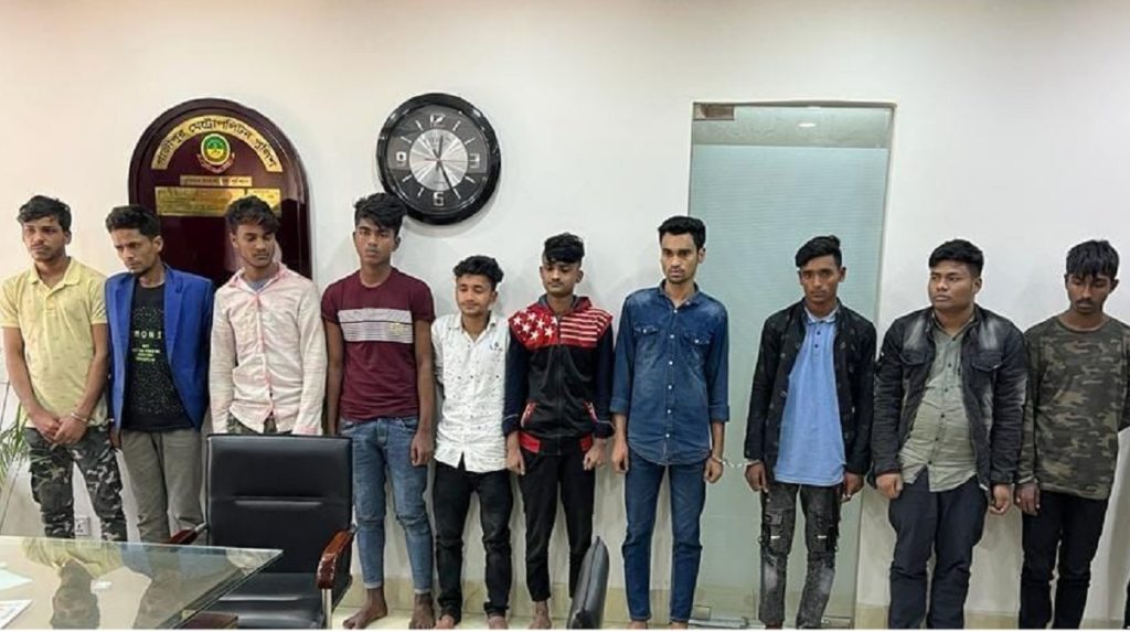 গ্রেফতারকৃতরা হলো, রিমন (২০), নব খগেন্দ্রনাথ রায় (২২), আহাম্মেদ আলী (১৮), সজিব হোসেন রাজা (২২), জাহাঙ্গীর (২৯), রনি (১৯), হৃদয় (১৯), মেহেদী হাসান মিরাজ (১৯), সাব্বির হোসেন (১৯) ও খন্দকার শাওন (২১)।