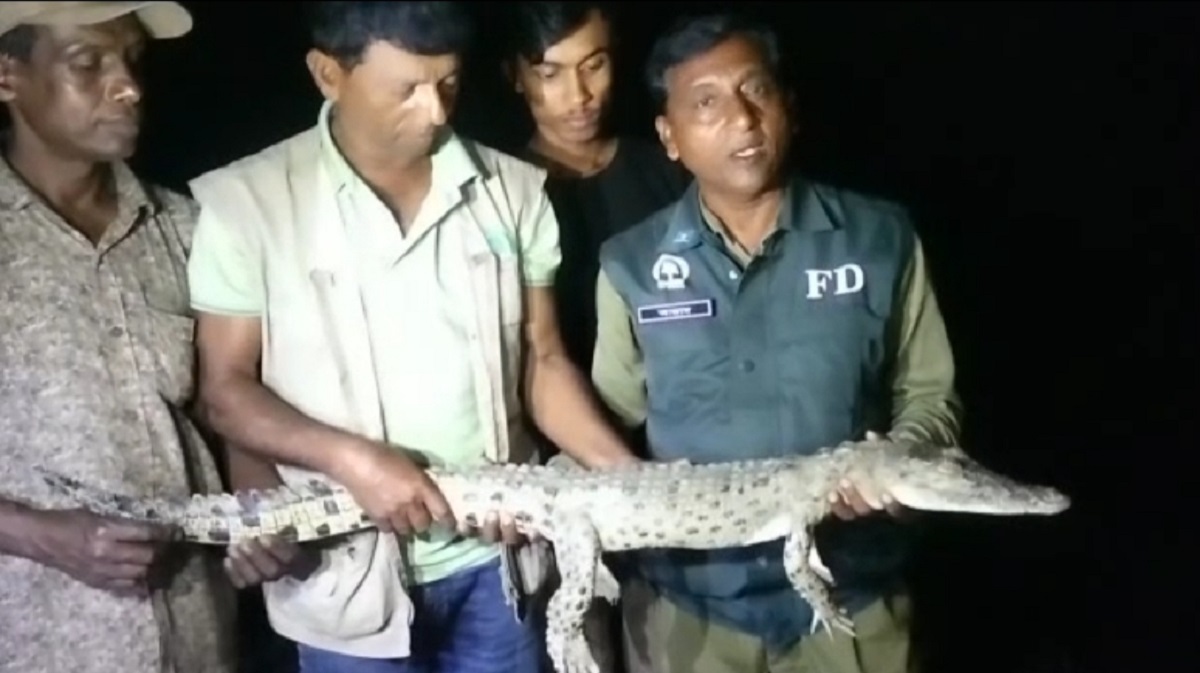 পরিবেশ, বন ও জলবায়ু পরিবর্তন বিষয়ক মন্ত্রণালয়ের উপমন্ত্রী বেগম হাবিবুন নাহারের ফোন পেয়ে লোকালয় থেকে উদ্ধার করা হলো সুন্দরবনের লোনা পানির কুমির।