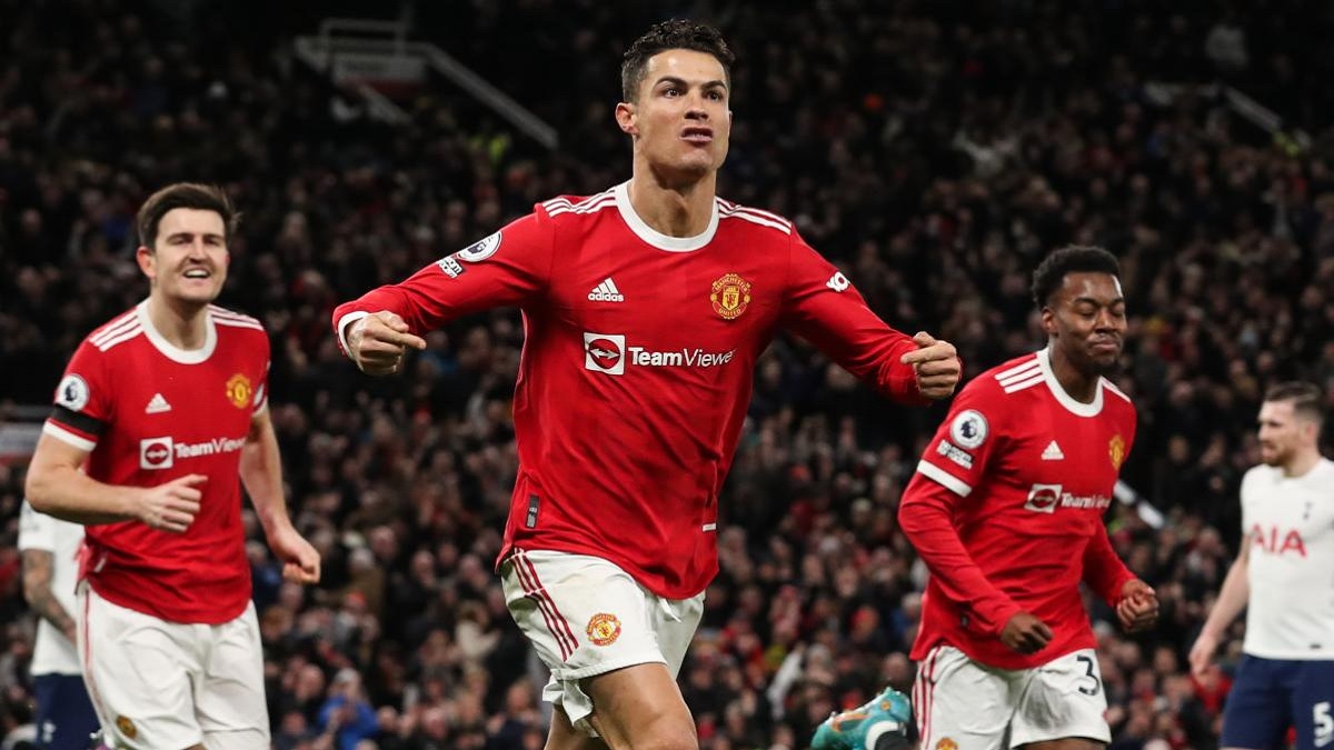৩৫ মিনিটে পেনাল্টি থেকে স্পার্সকে সমতায় ফেরান হ্যারি কেইন। তবে প্রথমার্ধেই আবারও লিড নেয় স্বাগতিকরা। ৩৮ মিনিটে আবারও রোনালদোর গোলে এগিয়ে যায় রেড ডেভিলরা। এবার জেডন সানচোর বাড়ানো বলে স্কোর শিটে নাম তোলেন তিনি। এই গোলের মাধ্যমে চেকোস্লোভাকিয়ার ইয়োসেফ বিকানের ৮০৫ গোলকে পেছনে ফেলে নতুন রেকর্ড লেখেন রোনালদো।