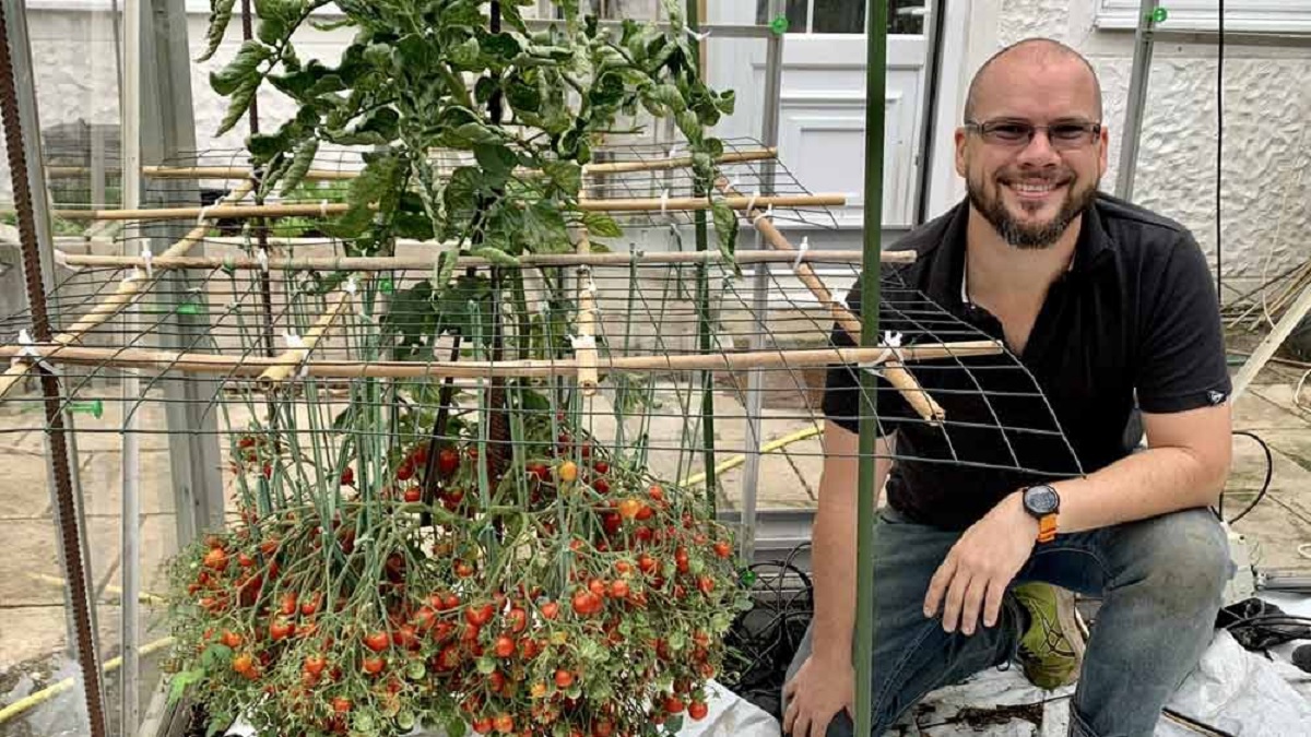 টমেটো গাছের সঙ্গে ডগলাস স্মিথ। ছবি টুইটার।