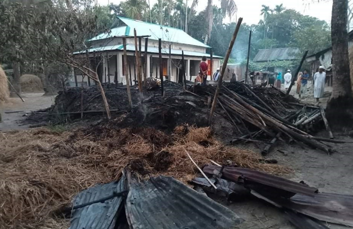 আগুনে পুড়ে ছাই কৃষকের গোয়ালঘর।