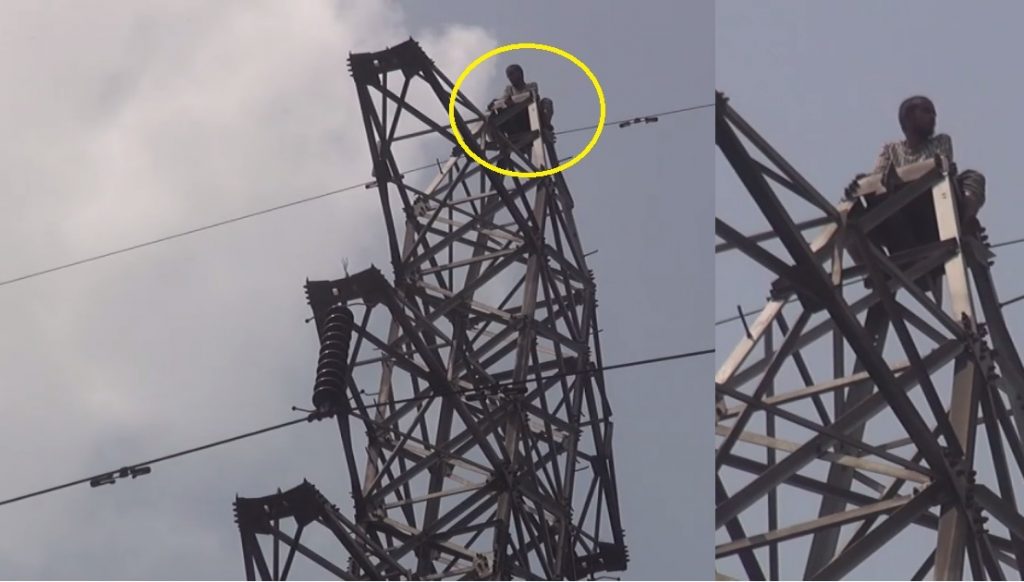 নারায়ণগঞ্জের সোনারগাঁয়ের কাচঁপুরে ১২০ ফুট উঁচু বিদ্যুতের টাওয়ারে উঠে বসে আছেন এক ব্যক্তি। হাইভল্টেজ বিদ্যুৎ লাইনের খুুঁটিতে উঠে পড়ায় ডিপিডিসি ওই খুঁটির সঞ্চালন লাইন বন্ধ করে রেখেছে।