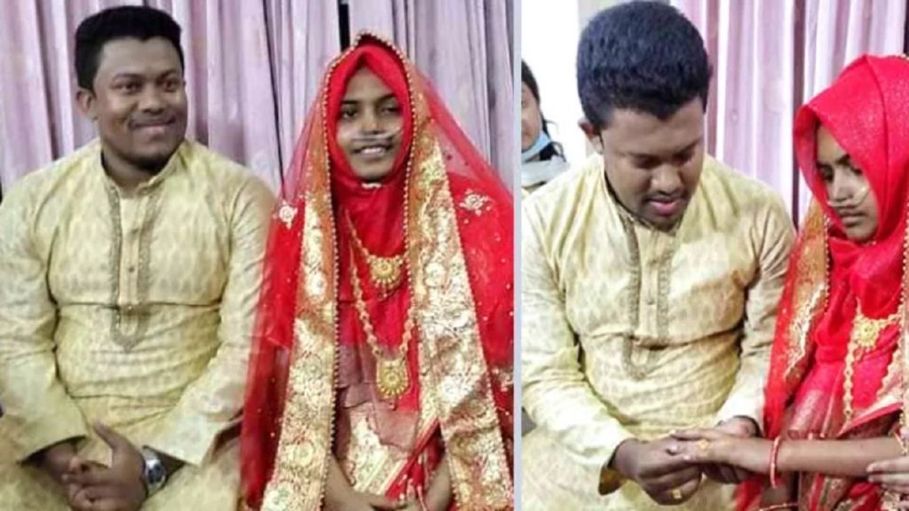 গত ৯ মার্চ নগরের মেডিকেল সেন্টারে ফাহমিদাকে বেনারসি পরিয়ে, বউ সাজিয়ে ১ টাকা কাবিনে বিয়ে করেন মাহমুদুল হাসান। চকরিয়ার ছেলে মাহমুদুল হাসান নর্থ সাউথ বিশ্ববিদ্যালয় থেকে এমবিএ শেষ করেছেন।