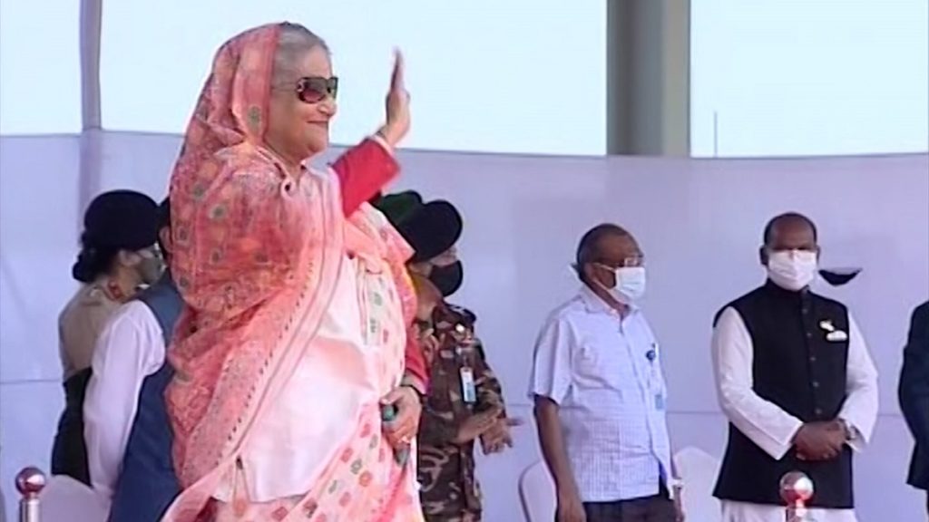 এর আগে বেলা ১০টা ৪৫ মিনিটে হেলিকপ্টারে ঢাকা থেকে পায়রা তাপবিদ্যুৎ কেন্দ্রে পৌঁছান প্রধানমন্ত্রী। এ সময় তাকে বাংলাদেশ পুলিশের সদস্যরা গার্ড অব অনার প্রদান করেন। এরপর কোল জেটিতে ২০০ নৌকা থেকে পতাকা নাড়িয়ে ও জাতীয় সঙ্গীত পরিবেশনের মাধ্যমে তাকে অভিবাদন জানানো হয়।
