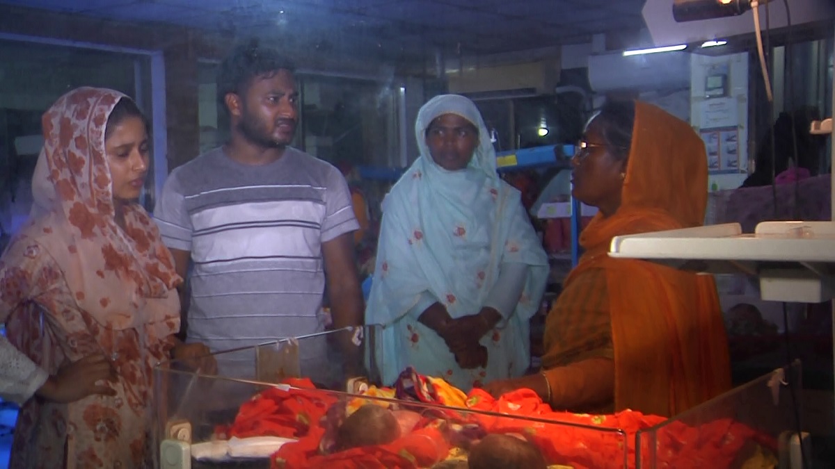 কুড়িগ্রাম সদর উপজেলার মনিরুজ্জামান বাঁধন এবং আশা বেগম দম্পতির ঘরে এসেছে চার সন্তান। অবশ্য আগে থেকেই বিষয়টি জানতেন তারা। সাহস নিয়ে চার সন্তানকে জন্ম দিতে মাসখানেক আগে রংপুরে একটি বাসা ভাড়া নিয়ে চিকিৎসা করাতে থাকেন। মঙ্গলবার (২২ মার্চ) রাত নয়টা ৪০ মিনিটে রংপুর মেডিকেল কলেজ হাসপাতালের গাইনি বিভাগে সিজারের মাধ্যমে সম্পূর্ণ সুস্থ ৩ কন্যা ও এক পুত্র জন্ম দেন মা আশা বেগম। তবে বুধবার দুপুরে মারা যায় পুত্র সন্তানটি।